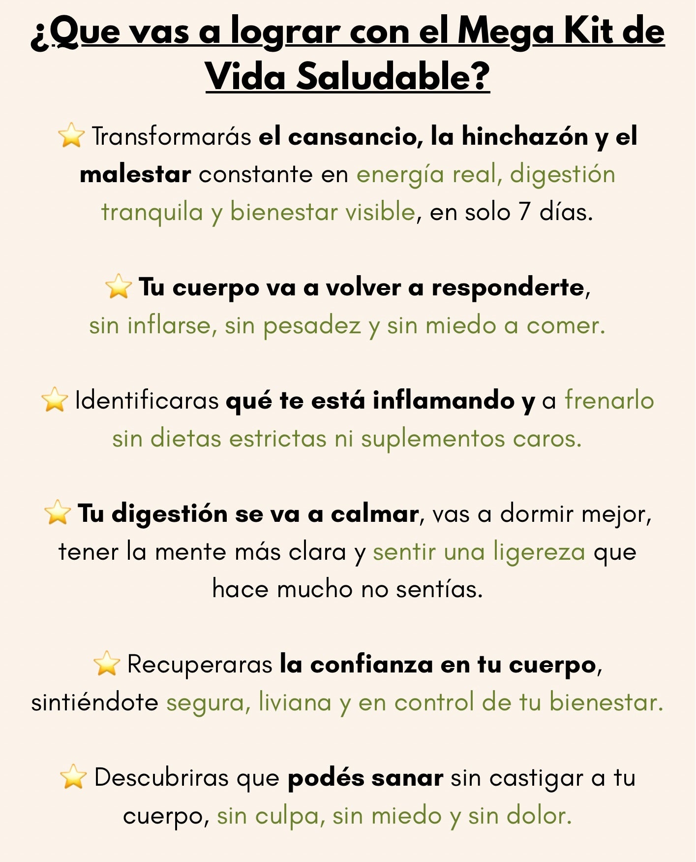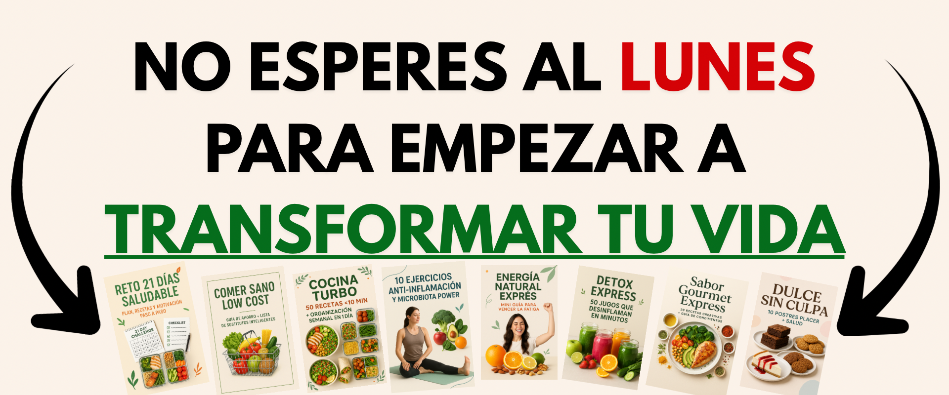 La mayoría nota cambios entre los 5 y 10 días: menos hinchazón, mejor digestión, piel más luminosa y más energía. Todo depende de la constancia y de cómo incorpores las recetas a tu rutina.
